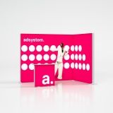 Zestaw adFrame Smart 3x2 L to zaawansowane narzędzie promocji, które sprawdzi się podczas wydarzeń i spotkań biznesowych. Dzięki dużym kasetonom LED o wymiarach 300 x 250 cm i 200 x 250 cm oraz eleganckiej trybunce adTribune Smart, zestaw ten pozwala stworzyć przestrzeń, która nie tylko przyciąga wzrok, ale również zapewnia wygodę podczas obsługi klientów.