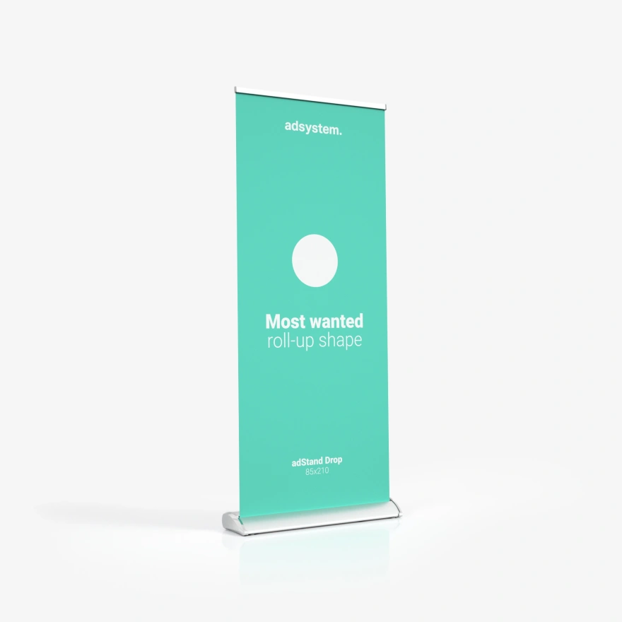 Rollup Drop to eleganckie i ekonomiczne rozwiązanie w wersji premium, idealne do promocji podczas targów, konferencji, prezentacji, a także w przestrzeniach biurowych i punktach sprzedaży. Dzięki przemyślanej konstrukcji, efektownemu wyglądowi i wysokiej jakości materiałom sprawdzi się zarówno w zastosowaniach krótko, jak i długoterminowych.