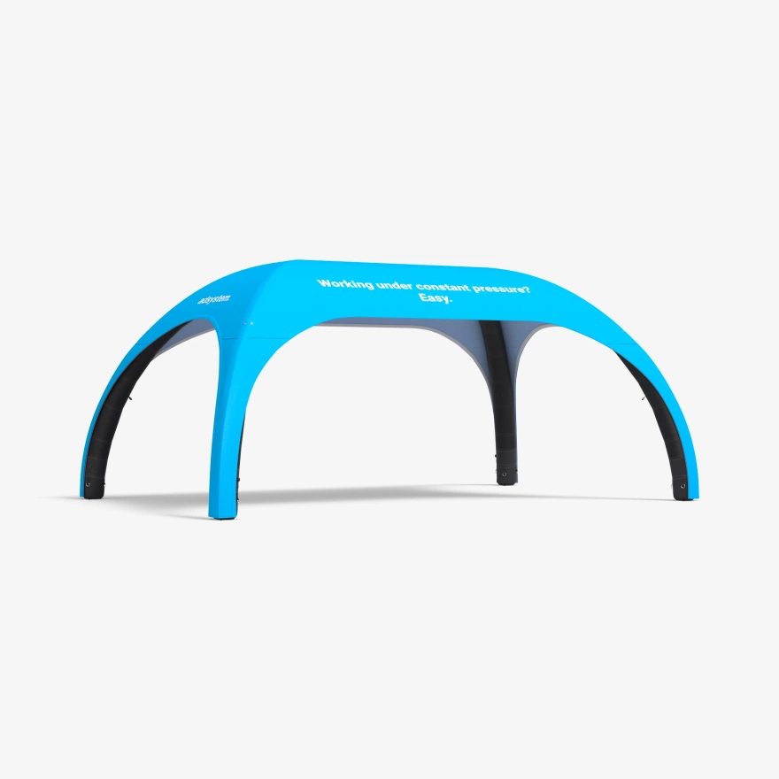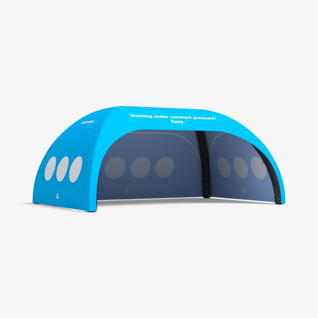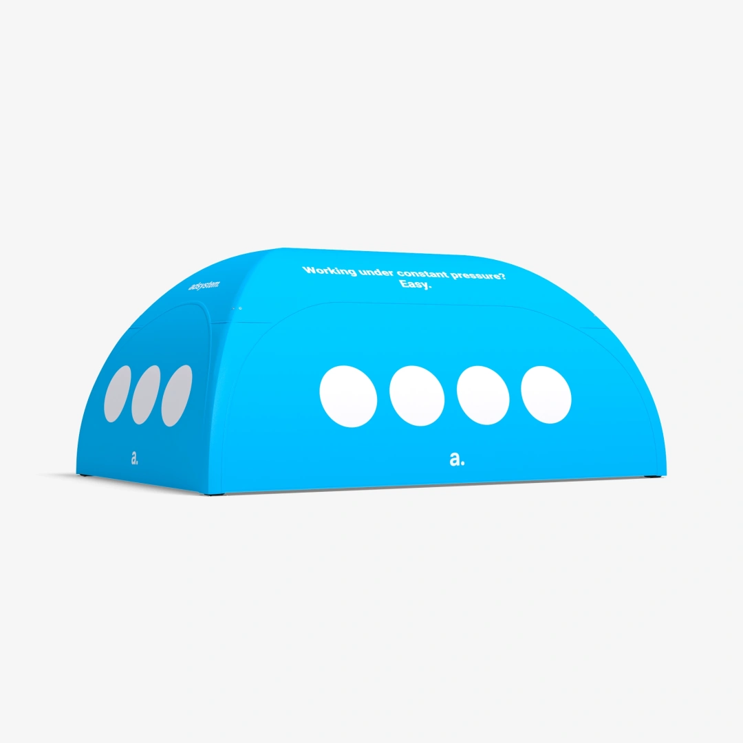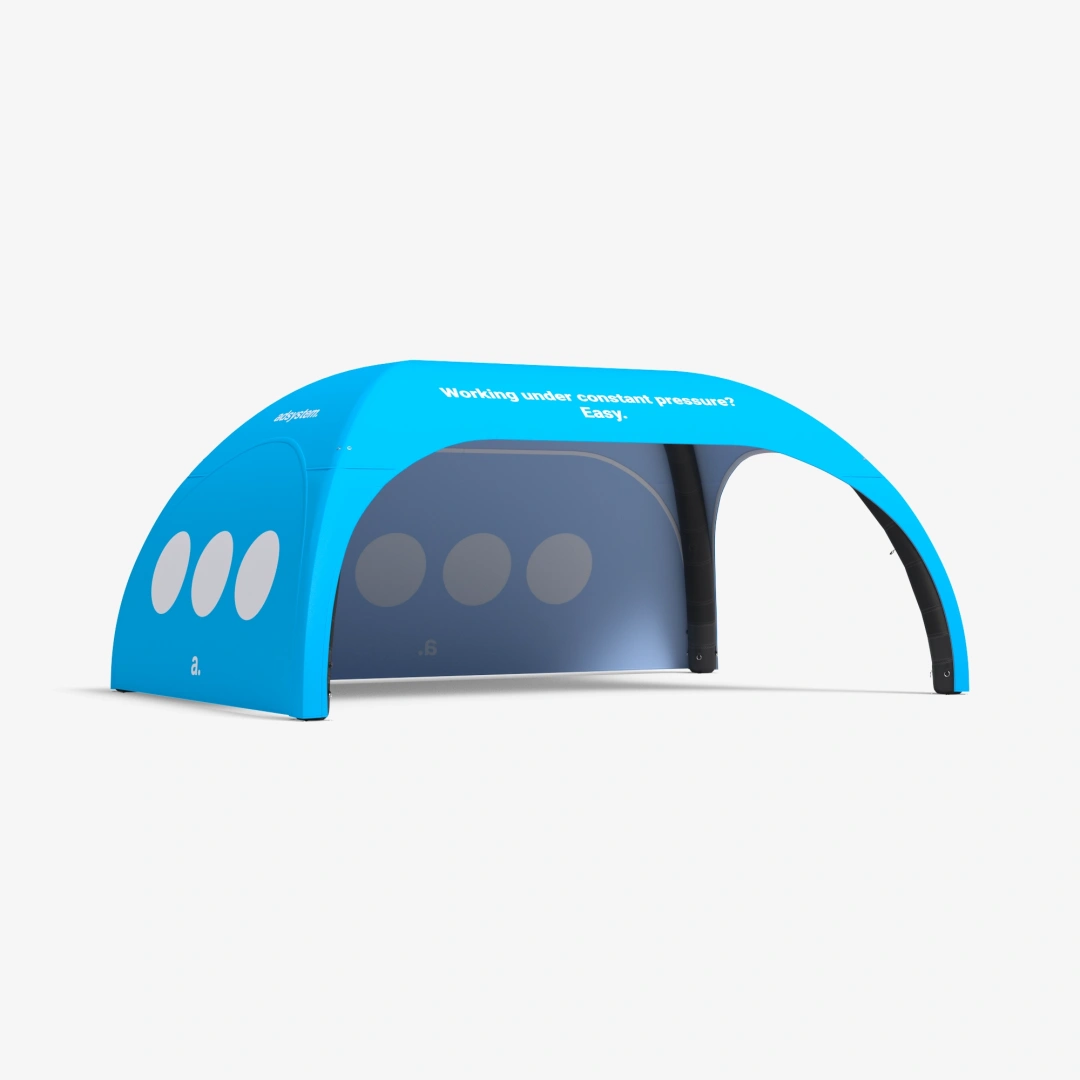 adTent Air Premium 4x6 to przestronny, dmuchany namiot, który sprawdzi się zarówno podczas wydarzeń na świeżym powietrzu, jak i w halach czy centrach konferencyjnych. Możesz zadrukować jego dach i ściany własnymi grafikami, logotypami i hasłami, dzięki czemu namiot stanie się skutecznym nośnikiem reklamy i przyciągnie uwagę uczestników.