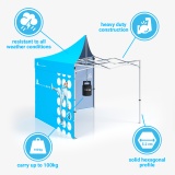 adTent Express Pro express tent is a new version of our classic product. It stands out with a reinforced construction capable of supporting loads of up to 100 kilograms. Tents of this type will be a great complement to promotional activities and campaigns conducted both outdoors and indoors. Our trade tents will allow you to arrange a comfortable workspace and help carry out a coherent advertising campaign by mounting personalized prints on the walls and roof of the tent.