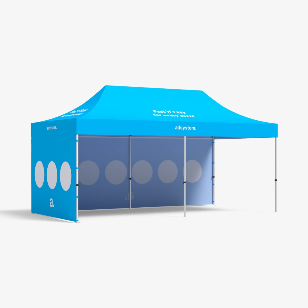 Express Pro to namiot ekspresowy 3×6, który został zaprojektowany z myślą o codziennym, intensywnym użytkowaniu. Wzmocniona konstrukcja zapewnia stabilność nawet przy silnym wietrze, a nowy system blokowania nóżek pozwala na jeszcze szybszy i wygodniejszy montaż. Dzięki dużej powierzchni pod zadaszeniem zyskujesz więcej miejsca na ekspozycję, obsługę klientów czy zaplecze techniczne. To rozwiązanie idealne na targi, festyny, zawody sportowe czy akcje promocyjne w plenerze. Namiot można też wykorzystać w halach i pawilonach, tworząc estetyczne i dobrze oznaczone stanowisko. Personalizowane nadruki na ścianach i dachu sprawiają, że konstrukcja staje się nie tylko funkcjonalnym schronieniem, ale też skutecznym nośnikiem reklamy Twojej marki.