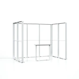 The adFrame Smart 3x2 U is a complete promotional set that allows for quick preparation of a U-shaped space. Consisting of seven adFrame Smart lightboxes and an elegant adTribune Smart LED counter, this set enables you to create a professional booth to showcase your brand at industry events.