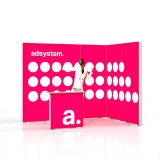 The adFrame Smart 3x2 L set is the ideal solution for companies seeking a functional exhibition stand. By combining five illuminated adFrame Smart LED lightboxes and the elegant adTribune Smart LED counter, you can create a cohesive and attractive promotional space that will capture attention at any event.