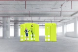 adWall Vario CR is an innovative exhibition booth with a dressing room function. Besides its primary use, it can also serve as a partition or advertising space.