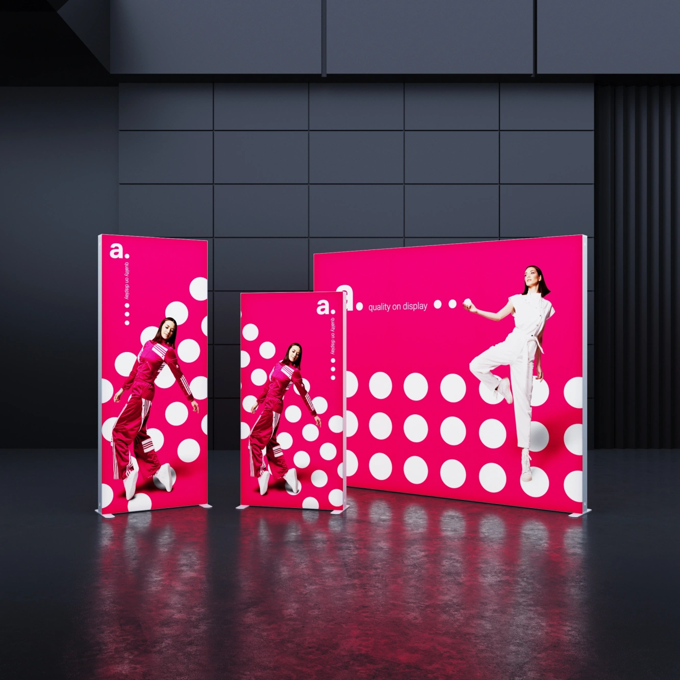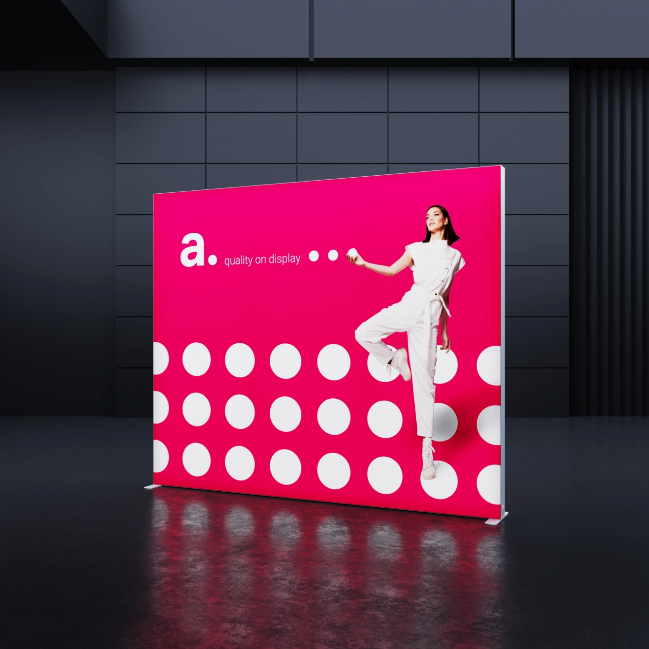 SEGO Single ist eine mobile beleuchtete Textilwand, ideal für Werbedisplays auf Messen, Events und in Geschäften. Ausgestattet mit einer Backlight-Beleuchtung und einem schmalen Aluminiumrahmen besticht sie durch ihr elegantes Design und ihre hohe Funktionalität. Das Produkt ist mit der gesamten SEGO-Serie kompatibel, was eine einfache Erweiterung des Ausstellungssystems ermöglicht.