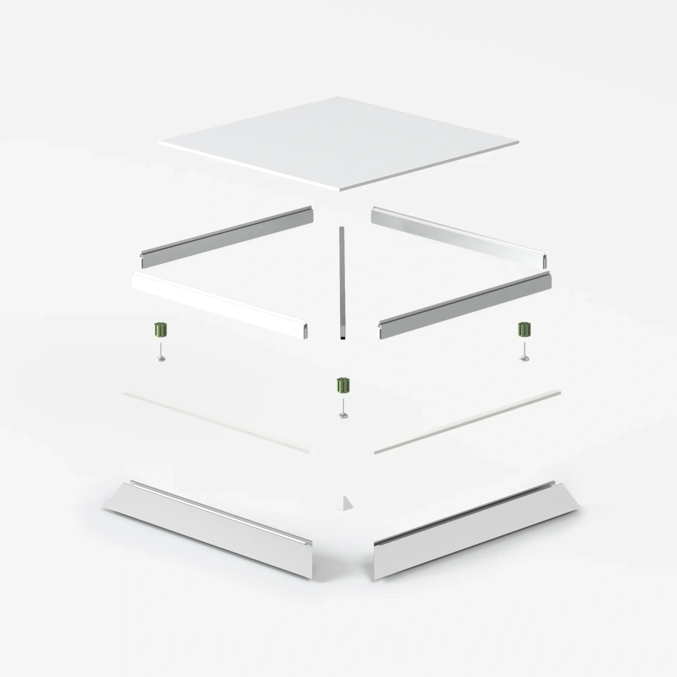 Aluminiowa konstrukcja umożliwia estetyczne zamaskowanie kabli zasilających, a także wzmocnienie przekazu firmy poprzez dodatkowe oświetlenie montowane na jednej z dwóch dostępnych krawędzi. W podłodze można osadzić gniazdka zasilające.