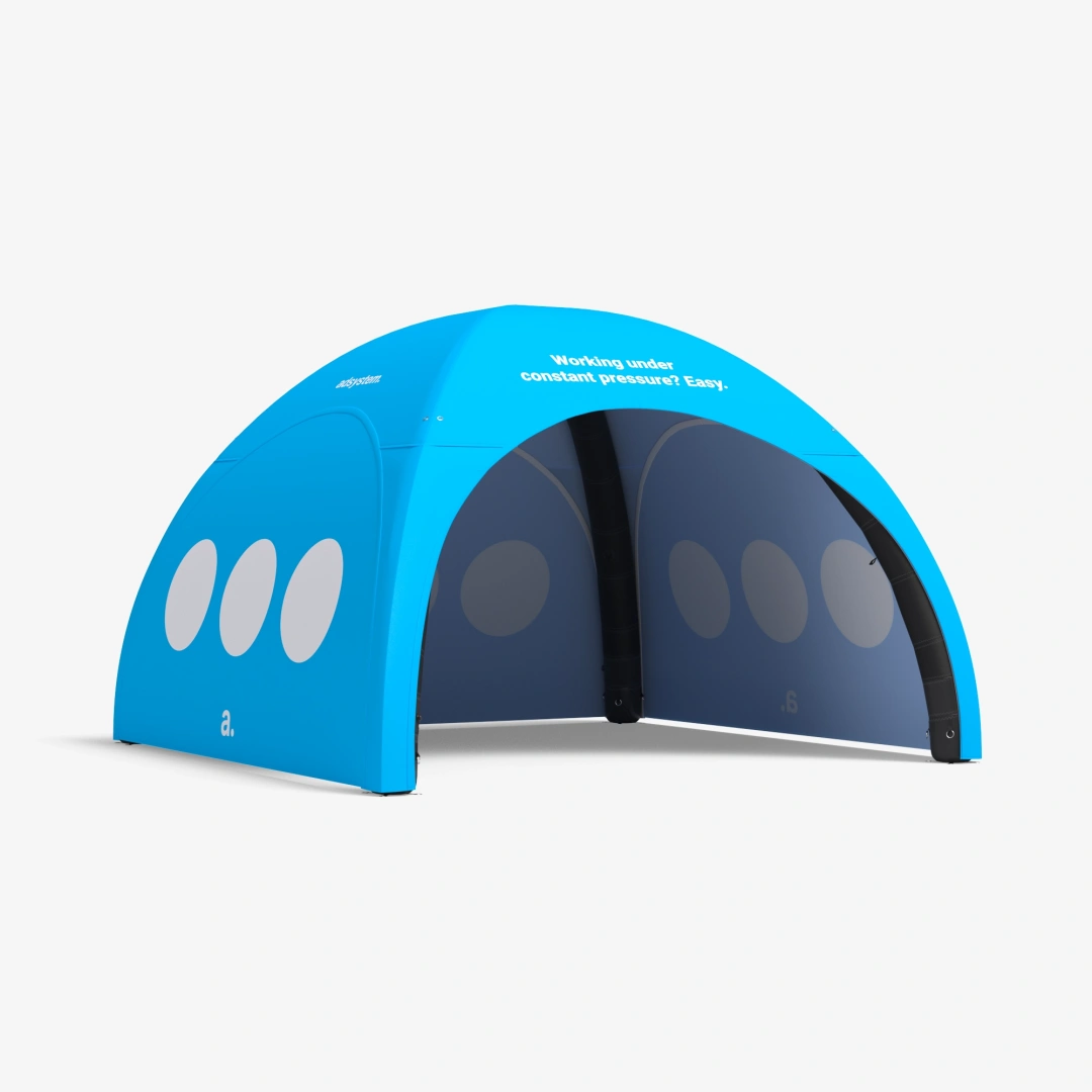 La tenda gonfiabile adTent Air Premium non è solo una soluzione per la protezione dalle condizioni meteorologiche avverse, ma anche un efficace strumento pubblicitario. Il materiale che riveste la struttura può essere personalizzato con le grafiche aziendali, trasformando la tenda pubblicitaria in un elemento accattivante che cattura l’attenzione del pubblico e attira visitatori al tuo stand. Questa tenda gonfiabile è costruita su una struttura a pressione costante, mantenendo livelli d’aria stabili grazie a speciali valvole.