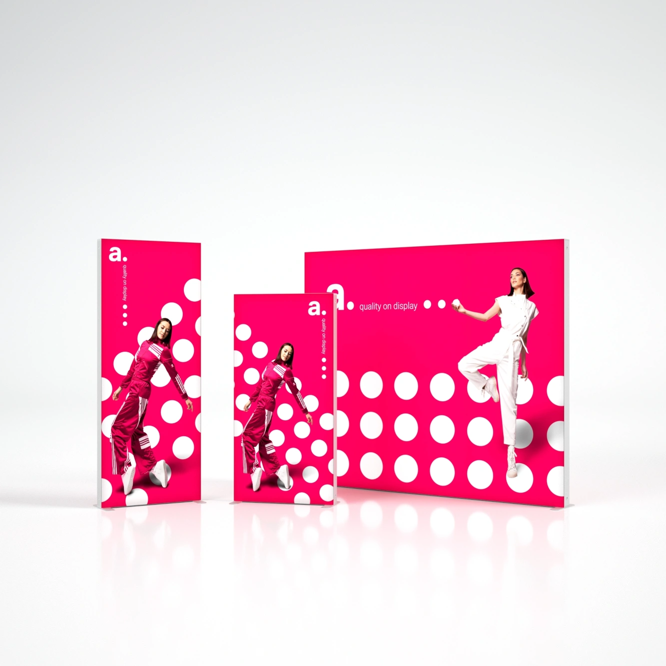 SEGO Single ist eine mobile beleuchtete Textilwand, ideal für Werbedisplays auf Messen, Events und in Geschäften. Ausgestattet mit einer Backlight-Beleuchtung und einem schmalen Aluminiumrahmen besticht sie durch ihr elegantes Design und ihre hohe Funktionalität. Das Produkt ist mit der gesamten SEGO-Serie kompatibel, was eine einfache Erweiterung des Ausstellungssystems ermöglicht.