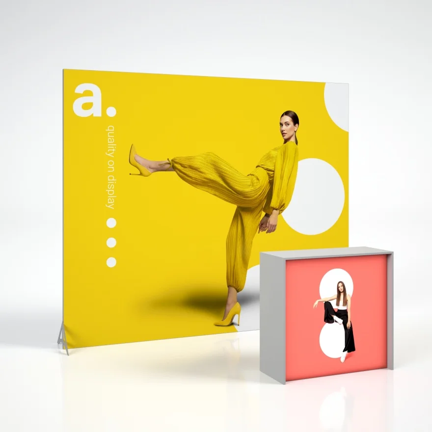 Il set eventi Premium DTF è una soluzione compatta per le aziende che desiderano sfruttare al massimo lo spazio disponibile in occasione di eventi e fiere. Il set include una cornice pubblicitaria bifacciale adFrame DTF 300 x 250 cm e un bancone retroilluminato adTribune Expo.