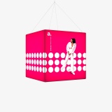adFrame CTF LED hanging to panel LED reklamowy w formie sześcianu lub prostopadłościanu. Przeznaczony do podwieszania szyld jest podświetlany i pokryty grafikami z każdej strony. Przygotowywany na indywidualne zamówienie klienta.