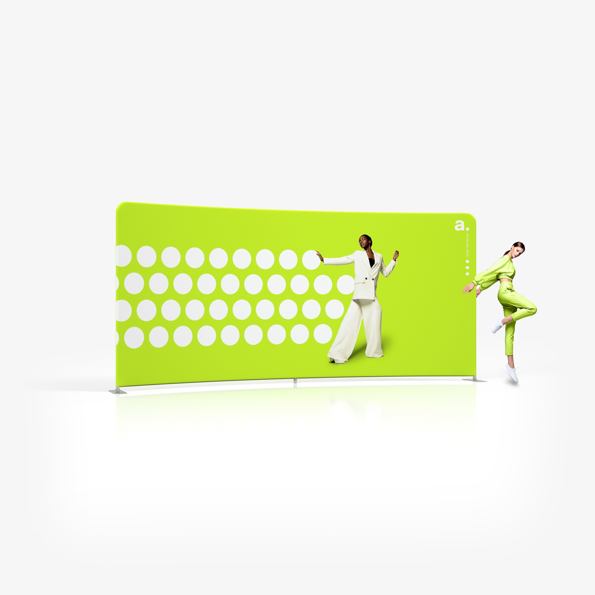 Tkanina naciągana na konstrukcję ścianek nie tworzy zagnieceń, a jej matowa powierzchnia eliminuje odbicia światła. Dzięki temu takie tło do nagrywania działa dobrze nawet przy oświetleniu punktowym lub w pomieszczeniach, w których trudno kontrolować światło. Rozmiar i model można dopasować do przestrzeni lub charakteru materiału wideo – od prostych teł po kształty łukowe.