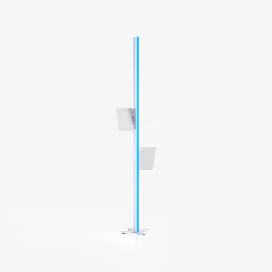 Lumina Stick to pierwszy stojak na ulotki z oświetleniem LED RGB. Może pełnić różne role – wyposażony w modułowe półki, podlega konfiguracji. Sprawdzi się zarówno jako klasyczny stojak na ulotki, jak i ekspozytor niewielkich produktów czy wolnostojący RGB stick. Jest mobilny – działa na baterie. Oświetleniem można sterować przy pomocy pilota, zawartego w zestawie. Lumina Stick jest w pełni kompatybilny z innymi produktami z serii Lumina. Dzięki temu umożliwia tworzenie rozbudowanych ekspozycji świetlnych, które przyciągają uwagę i budują spójny wizerunek marki. Dodatkowo, produkt oferuje możliwość zainstalowania wąskiego wydruku na konstrukcji, co pozwala na dodatkową ekspozycję treści lub elementów brandingowych.