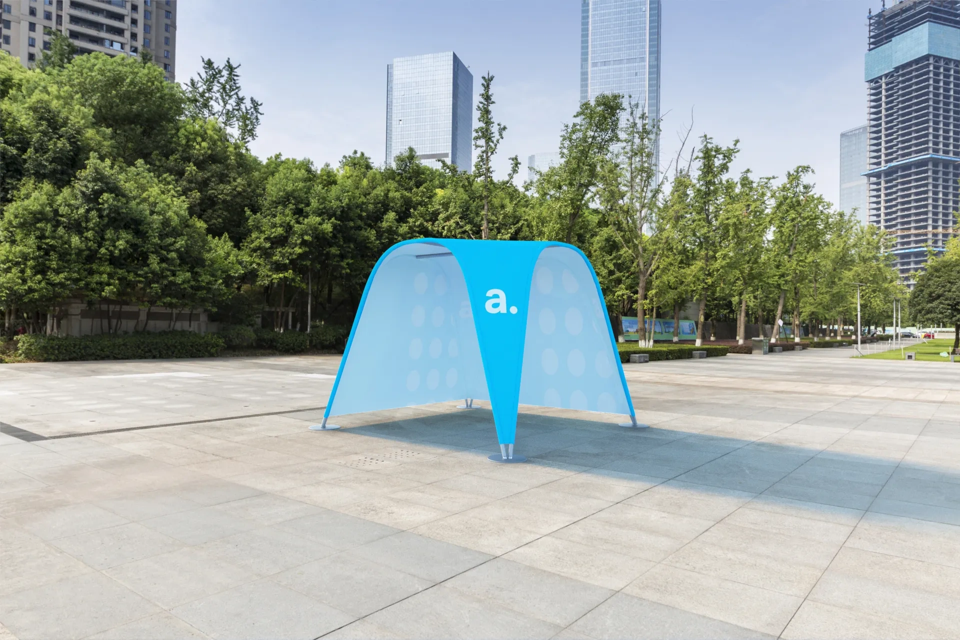 Innym dobrym sposobem na wykorzystanie namiotu rurkowego adTent Vario jest użycie go podczas targów, promocji czy innych wydarzeń w dużych halach lub centrach handlowych. W takich okolicznościach namiot handlowy będzie przede wszystkim nośnikiem reklamy, który zwróci uwagę odbiorców i przyciągnie ich do stoiska, a także wytyczy jego granice.