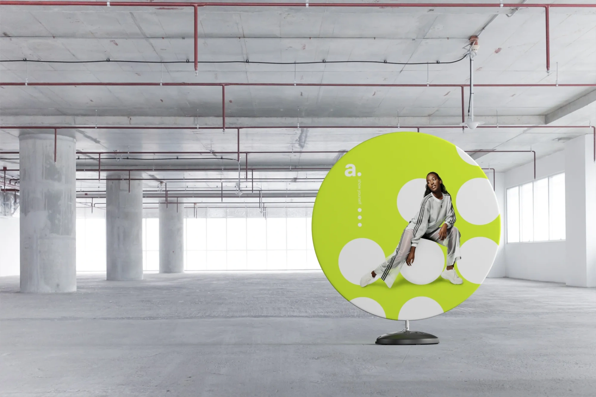 Ścianka zdjęciowa jednostronna w kształcie koła z podstawą wodną