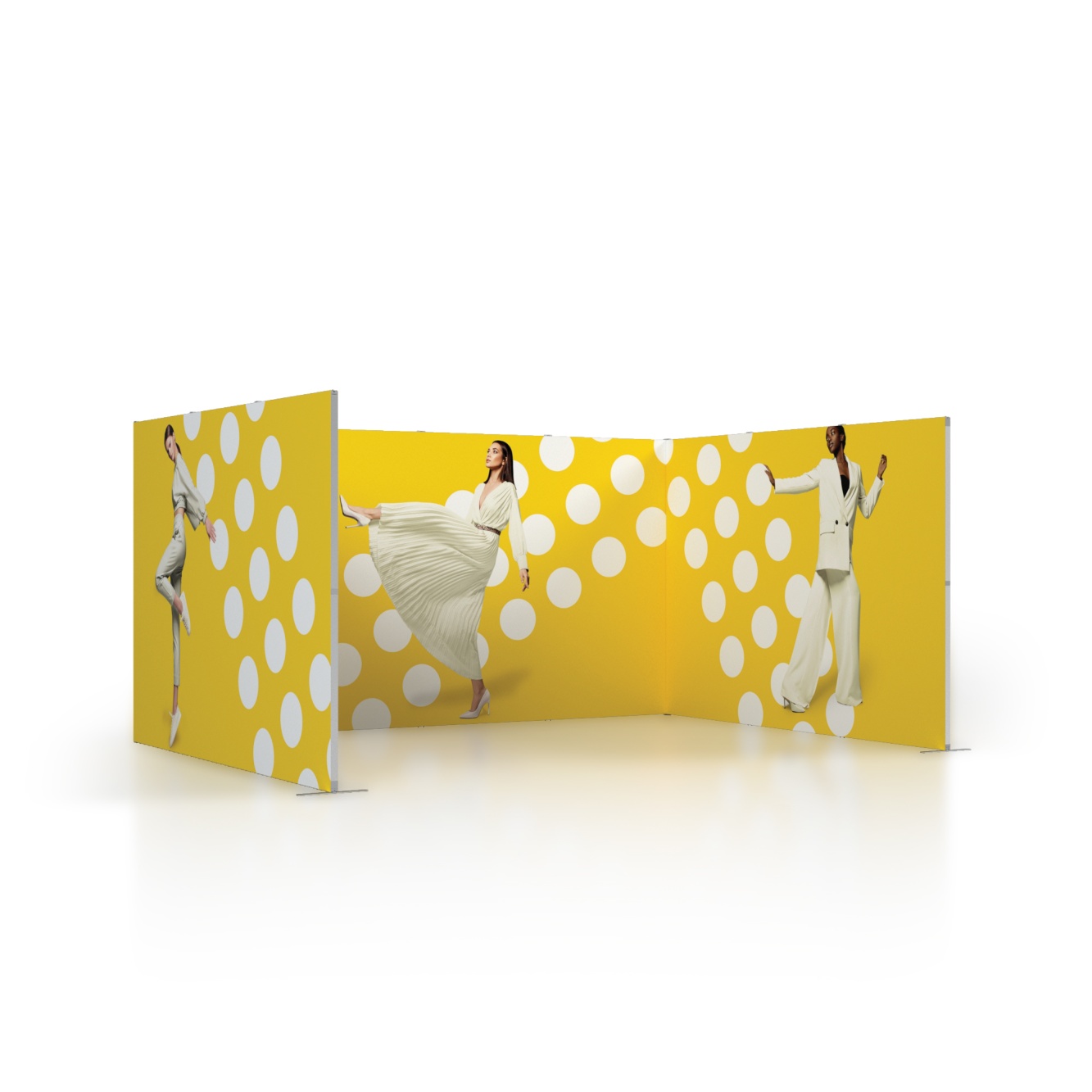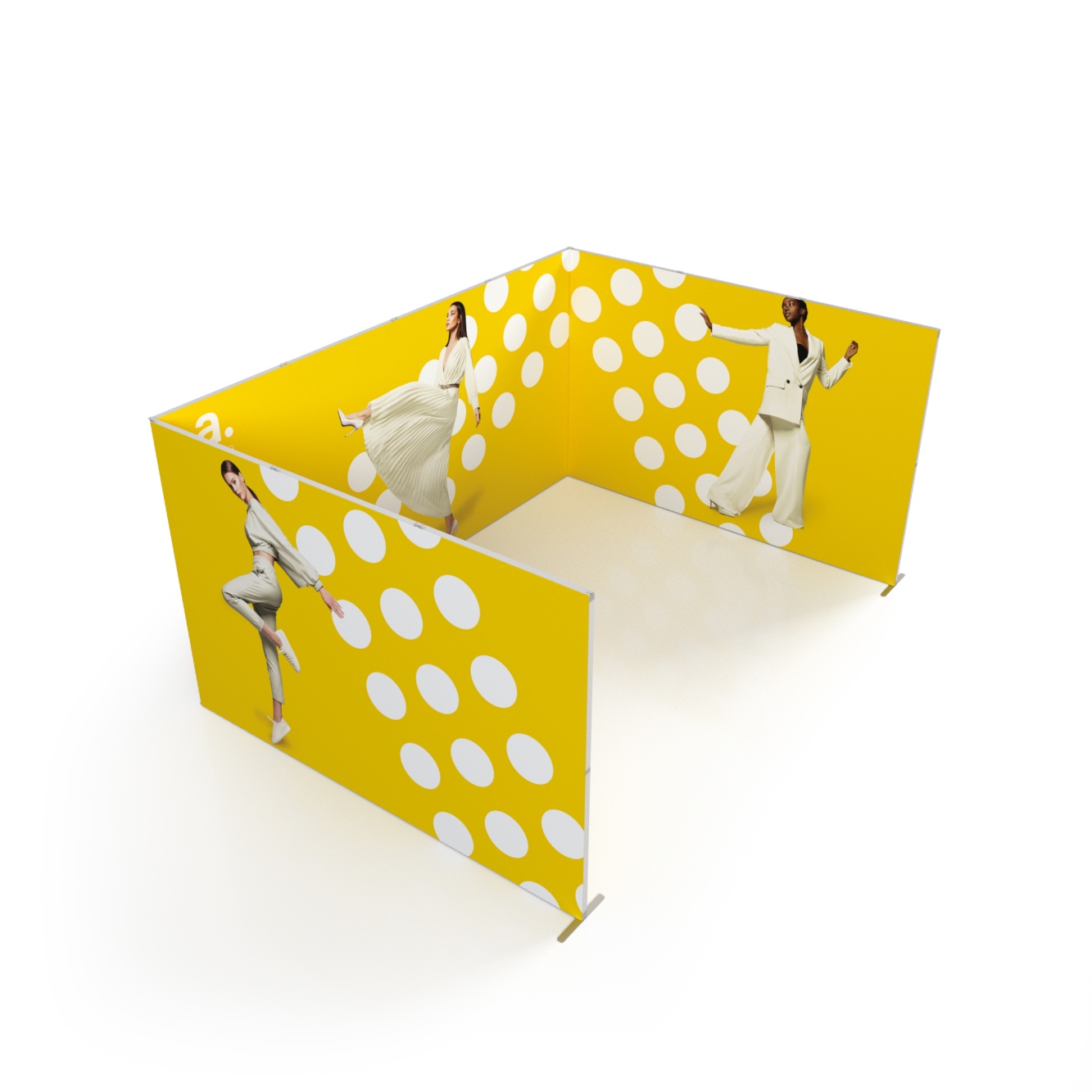 Zestaw targowy Foldable to ekonomiczny system wystawienniczy, za pomocą którego przygotujesz schludne stoisko promocyjne na różne wydarzenia. Konstrukcja proponowanych tu rozwiązań opiera się na aluminiowych modułach o wymiarach 100x250 cm, na których zawisną tekstylne wydruki z personalizowanymi grafikami.