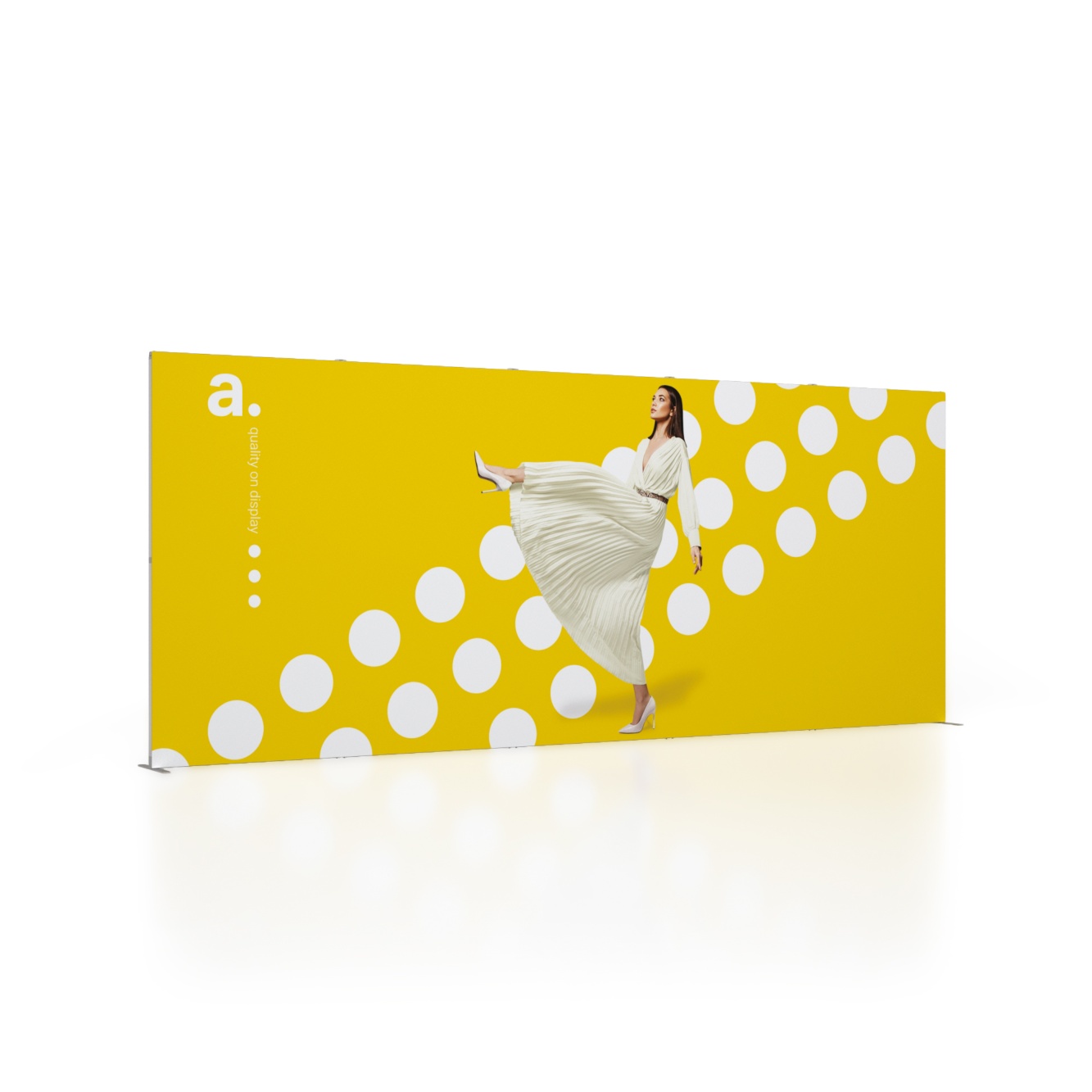 Zestaw targowy Foldable to ekonomiczny system wystawienniczy, za pomocą którego przygotujesz schludne stoisko promocyjne na różne wydarzenia. Konstrukcja proponowanych tu rozwiązań opiera się na aluminiowych modułach o wymiarach 100x250 cm, na których zawisną tekstylne wydruki z personalizowanymi grafikami.