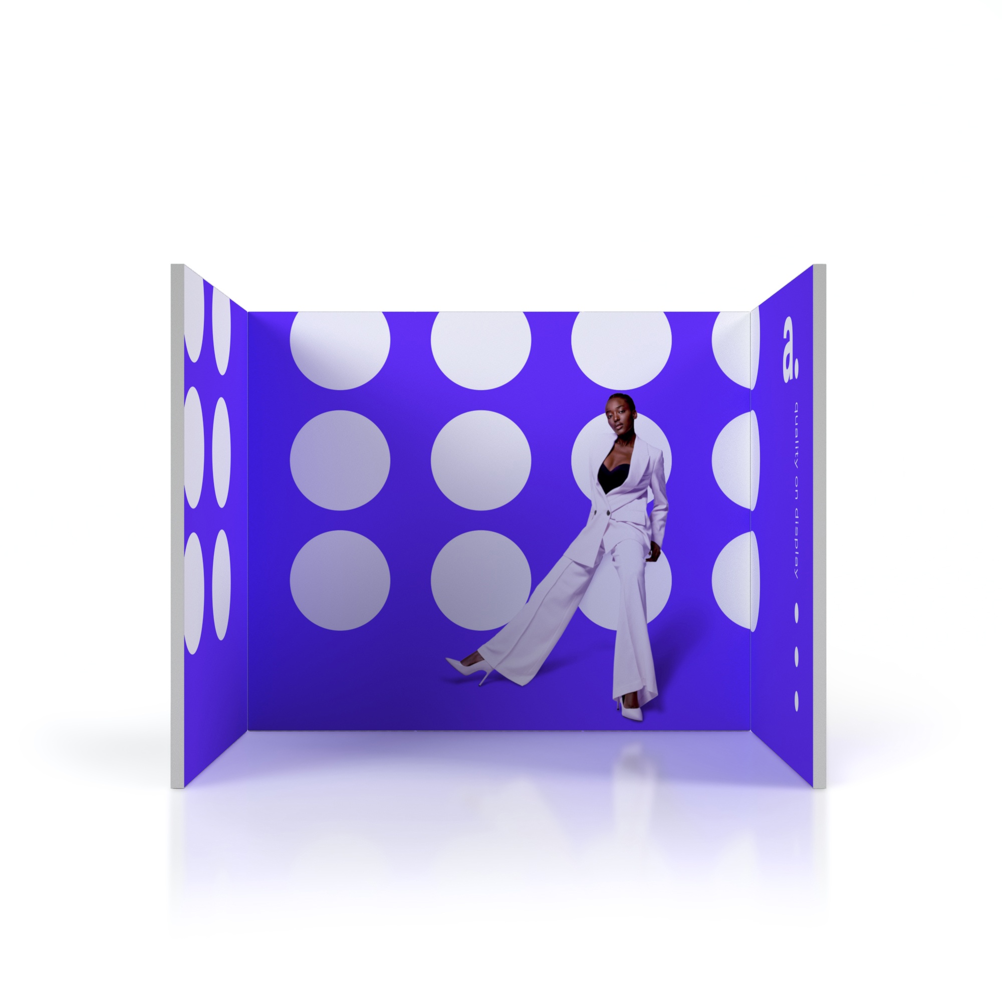 Gotowe zestawy mFrame to szybki sposób na stworzenie profesjonalnej przestrzeni wystawienniczej. W zależności od wybranego wariantu możesz przygotować stoisko półwyspowe, narożne lub w układzie szeregowym. Każdy zestaw bazuje na modułowych ramach aluminiowych, które łączą się bez użycia narzędzi.