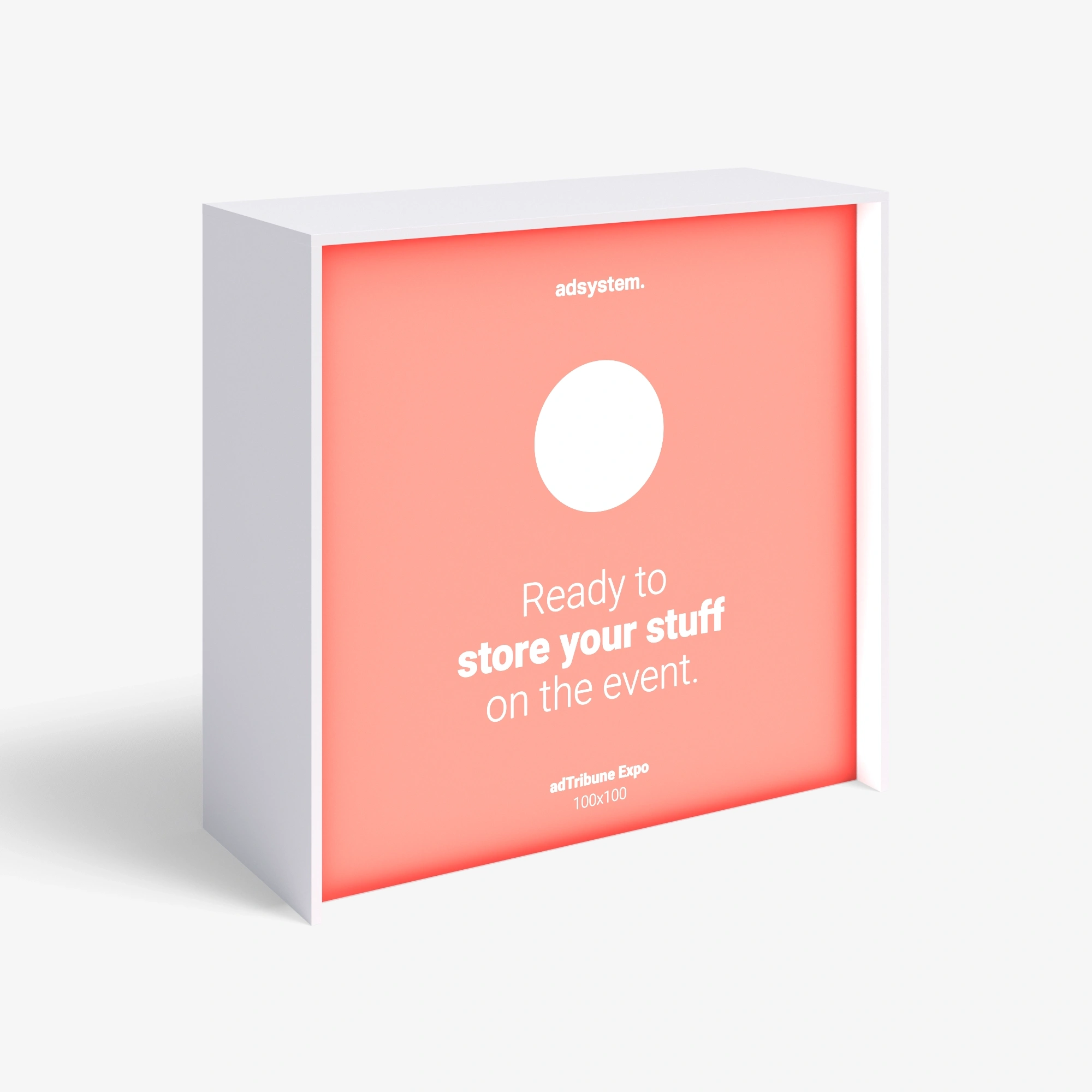 adTribune Expo to elegancka i funkcjonalna lada promocyjna, wyposażona w oświetlenie LED. Za jej pomocą zaaranżujesz miejsce do rozmów z klientami lub ekspozycji produktów i usług.