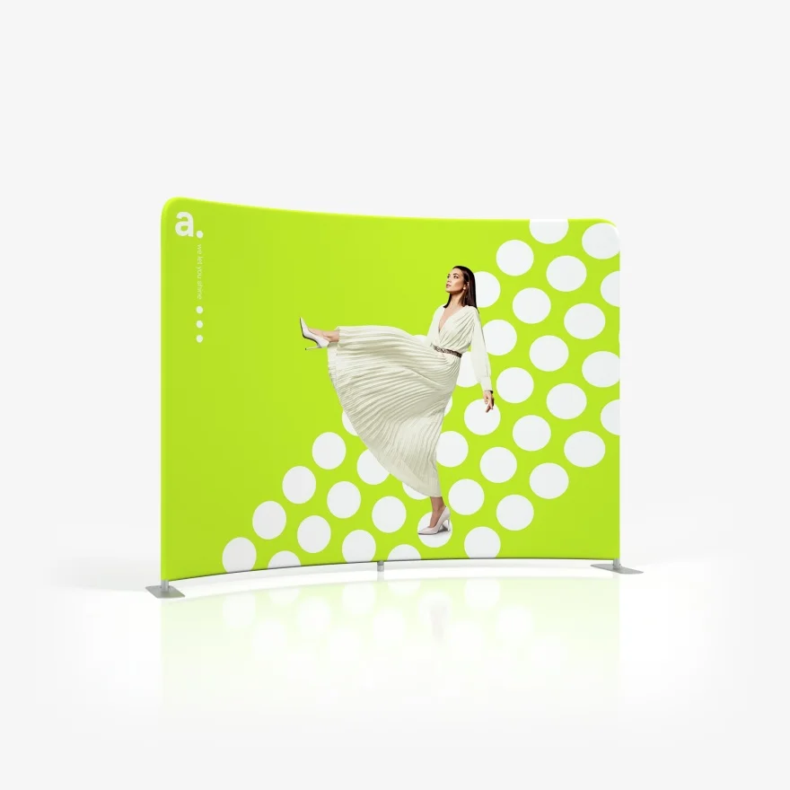 adWall Vario Łukowa Premium to łukowa ścianka targowa, która będzie wsparciem twoich działań promocyjnych. Możesz ją zastosować na promocjach, konferencjach czy spotkaniach branżowych. Do wykonania konstrukcji zastosowaliśmy aluminiowe profile o szerokości 43 mm, a wydruk z twoją personalizowaną grafiką przygotujemy na tekstylnym materiale.
