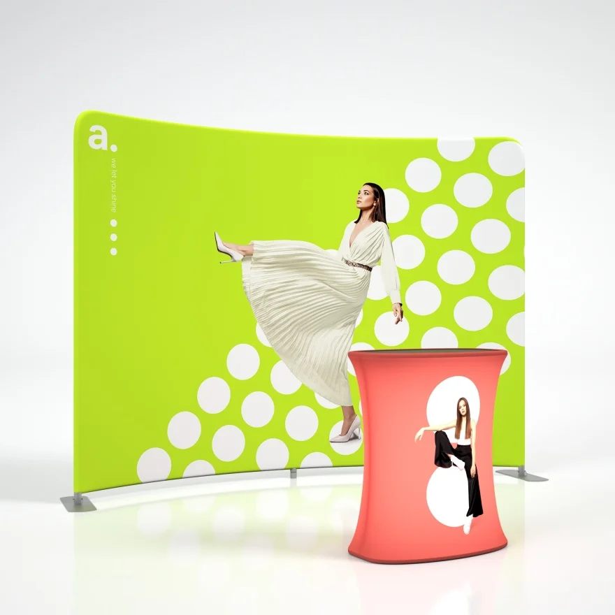 Zestaw konferencyjny Economic Vario to kompaktowe rozwiązanie, które umożliwia przygotowanie profesjonalnej przestrzeni wystawienniczej w kilka minut. Dedykowany uczestnikom konferencji i innych wystąpień, jest mobilny, funkcjonalny i łatwy w montażu. Na zestaw składają się ścianka adWall Vario Łukowa Light oraz trybunka reklamowa adTribune Big Quick LED.