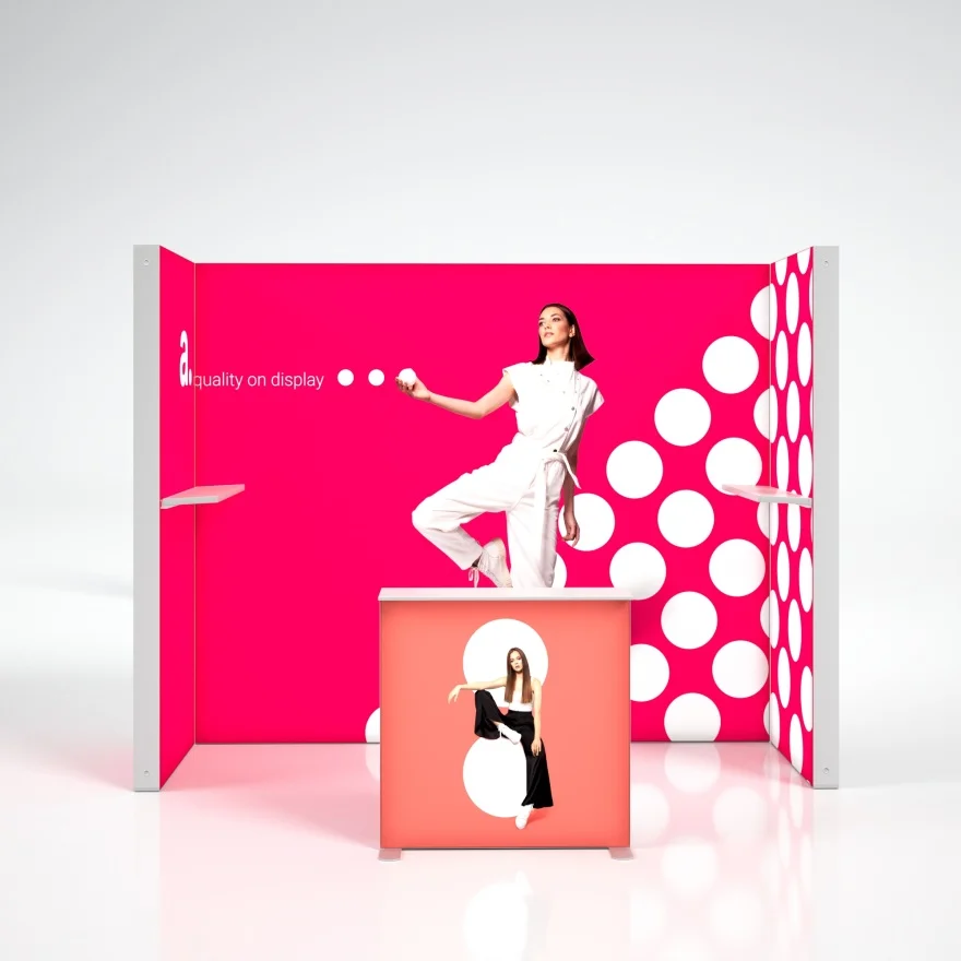 Zestaw targowy Premium LED to idealne rozwiązanie do stworzenia kompletnego, profesjonalnego stoiska na targach i eventach. Dzięki dużemu kasetonowi o wymiarach 300 x 250 cm, dwóm mniejszym lightboxom i podświetlanej trybunce adTribune SEGO, możesz w pełni zaaranżować swoją przestrzeń wystawienniczą.
