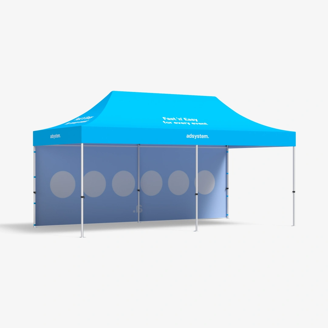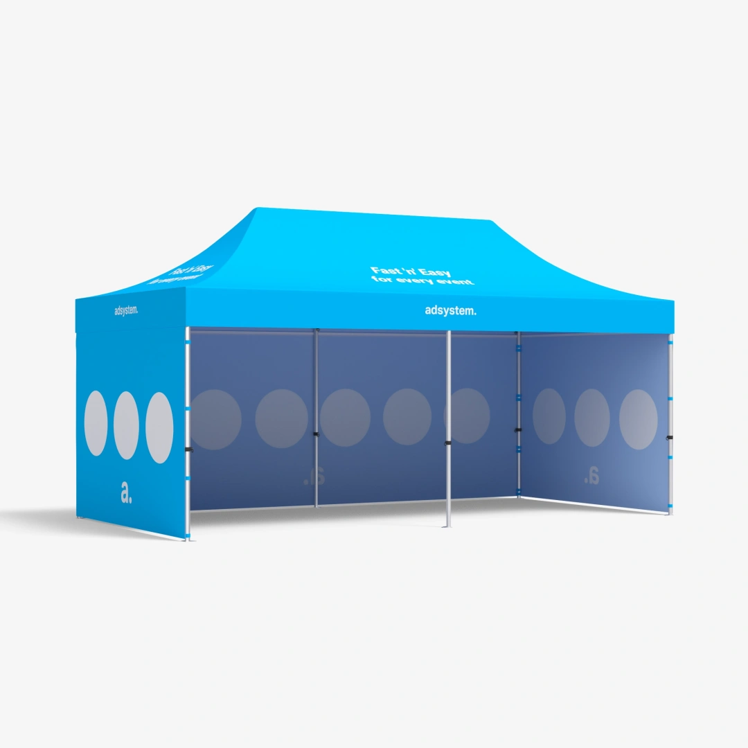 Express Pro to namiot ekspresowy 3×6, który został zaprojektowany z myślą o codziennym, intensywnym użytkowaniu. Wzmocniona konstrukcja zapewnia stabilność nawet przy silnym wietrze, a nowy system blokowania nóżek pozwala na jeszcze szybszy i wygodniejszy montaż. Dzięki dużej powierzchni pod zadaszeniem zyskujesz więcej miejsca na ekspozycję, obsługę klientów czy zaplecze techniczne. To rozwiązanie idealne na targi, festyny, zawody sportowe czy akcje promocyjne w plenerze. Namiot można też wykorzystać w halach i pawilonach, tworząc estetyczne i dobrze oznaczone stanowisko. Personalizowane nadruki na ścianach i dachu sprawiają, że konstrukcja staje się nie tylko funkcjonalnym schronieniem, ale też skutecznym nośnikiem reklamy Twojej marki.