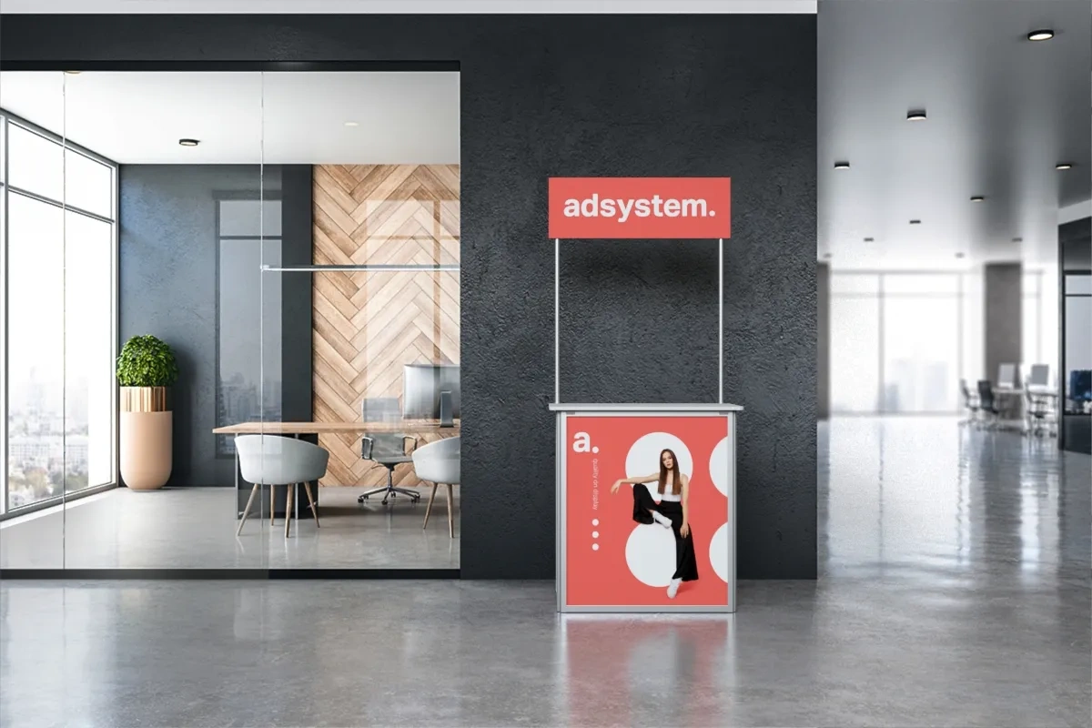 Akcje promocyjne: stoisko adBox Standard jest idealnym rozwiązaniem na wszelkiego rodzaju akcje promocyjne, gdzie liczy się szybki montaż i mobilność.