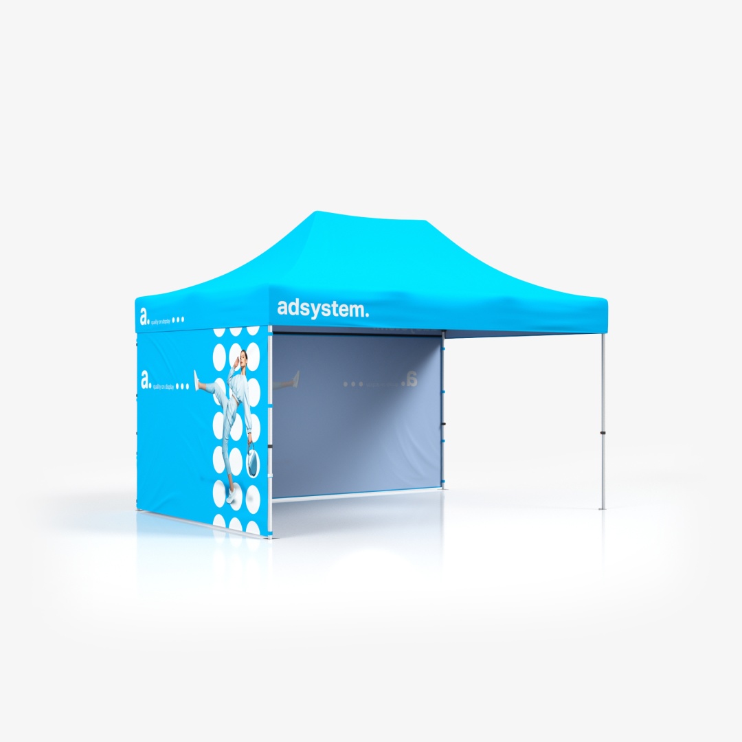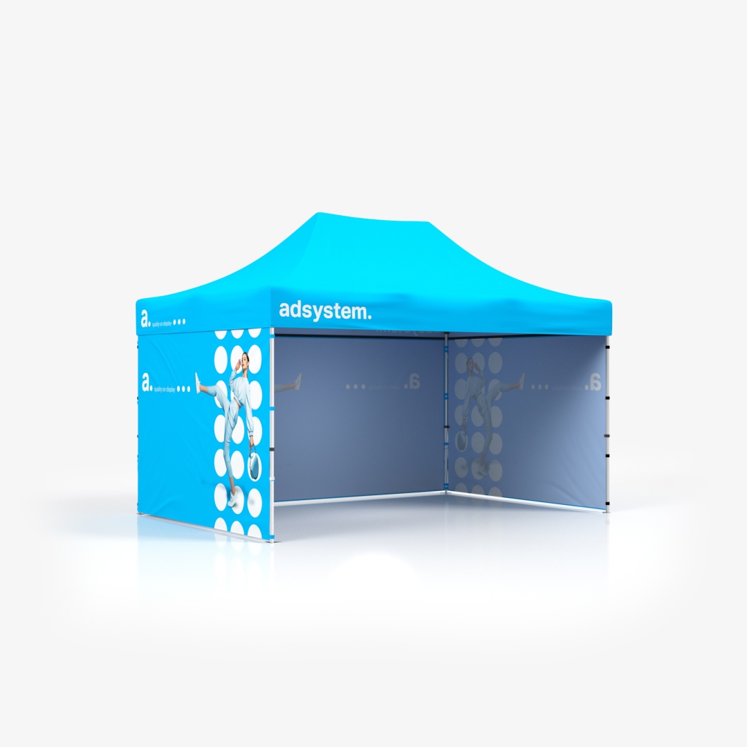 Namiot handlowy adTent Express to uniwersalny produkt, który znajdzie zastosowanie podczas najróżniejszych eventów zarówno na świeżym powietrzu jak i wewnątrz budynków. Namiot ekspresowy z logo będzie dobrym wyborem podczas stabilnych warunków pogodowych, gdy nie wieje zbyt silny wiatr, ani nie pada ulewny deszcz.