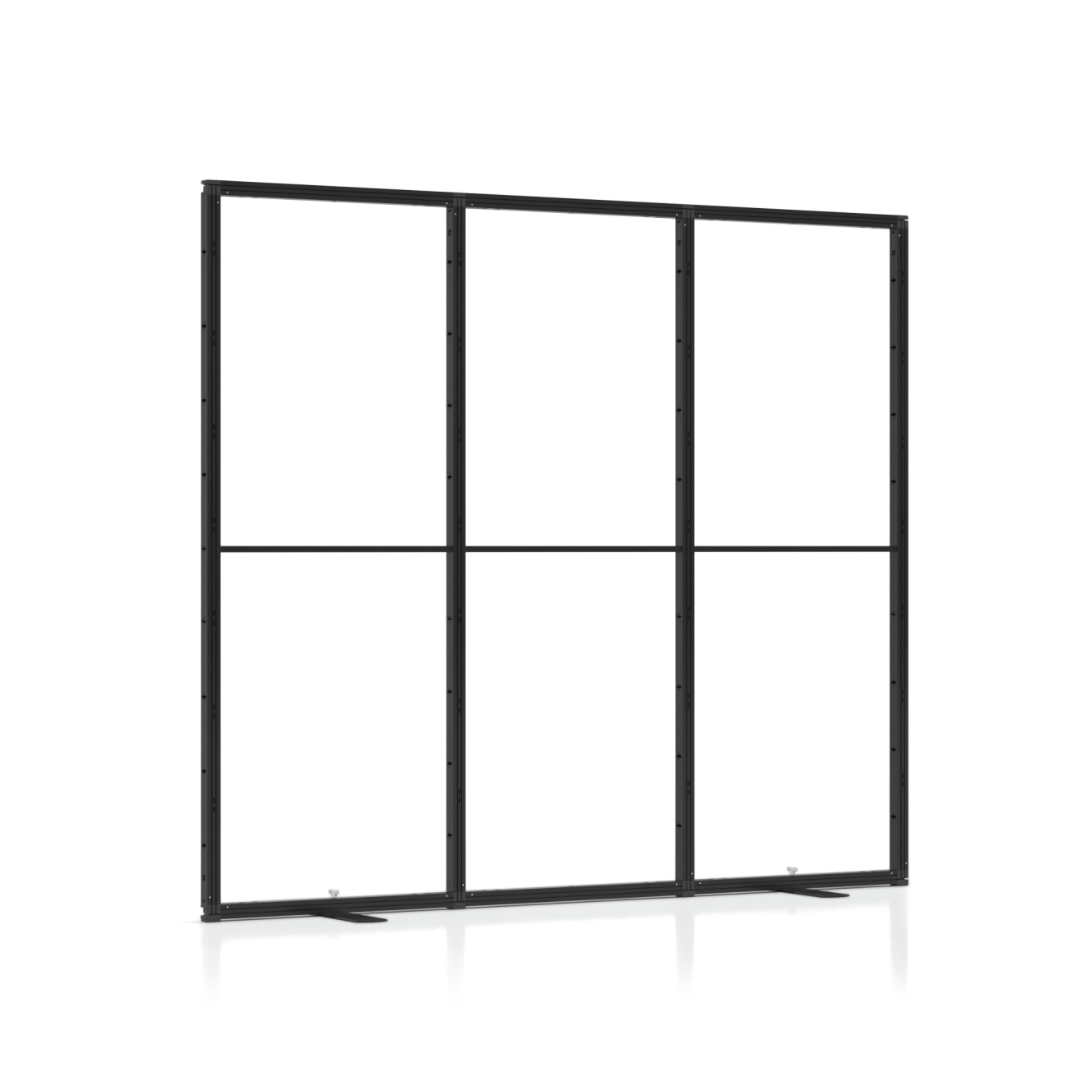 Zabudowa targowa Multiframe to sposób na stworzenie stoiska, które łatwo dopasujesz do przestrzeni i własnych pomysłów. Moduły w rozmiarach 100×250 cm i 50×250 cm pozwalają budować różne układy i prezentować grafiki na tekstylnych wydrukach, dzięki czemu Twoja marka od razu staje się bardziej widoczna. Jeśli potrzebujesz zaplecza, możesz wybrać wersję z kantorkiem i drzwiami zamykanymi na klucz. System nie ma wbudowanego podświetlenia, ale bez problemu doświetlisz go lampkami zewnętrznymi, które podkreślą kolory i detale grafik.