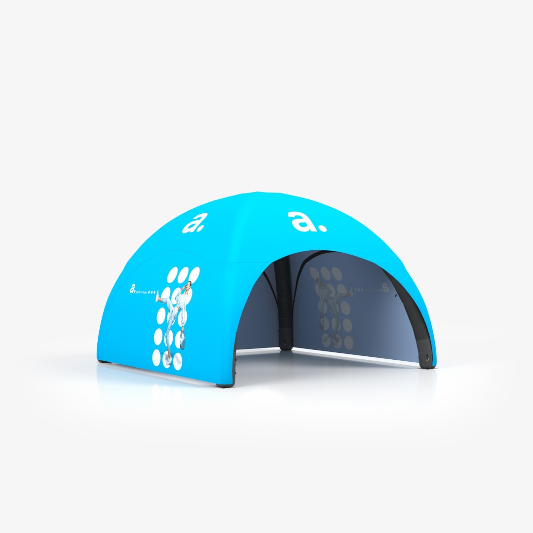 adTent Air Premium to namiot dmuchany imprezowy, który wykorzystasz nie tylko jako zabezpieczenie przed warunkami atmosferycznymi, ale również jako nośnik reklamy. Materiał pokrywający konstrukcję zadrukujemy twoimi firmowymi grafikami, dzięki czemu namiot reklamowy zwróci uwagę twoich odbiorców i przyciągnie ich do stoiska. Prezentowany tu namiot dmuchany opiera się na stałociśnieniowym stelażu, który utrzymuje niezmienny poziom powietrza dzięki specjalnym zaworom.